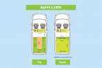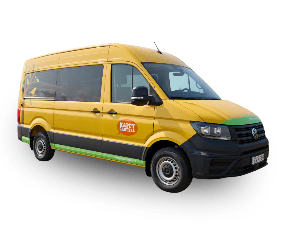 Der Happy 3 Automatik ist ideal für eine Familie mit 2 Kindern, die ein kompaktes und wendiges Campingfahrzeug mit Automatikgetriebe in Island mieten möchten. Das Hochdach bietet Stehhöhe und es gibt 2-3  Schlafplätze auf der umgebauten Sitzgruppe und 2 weitere im Hochdach.